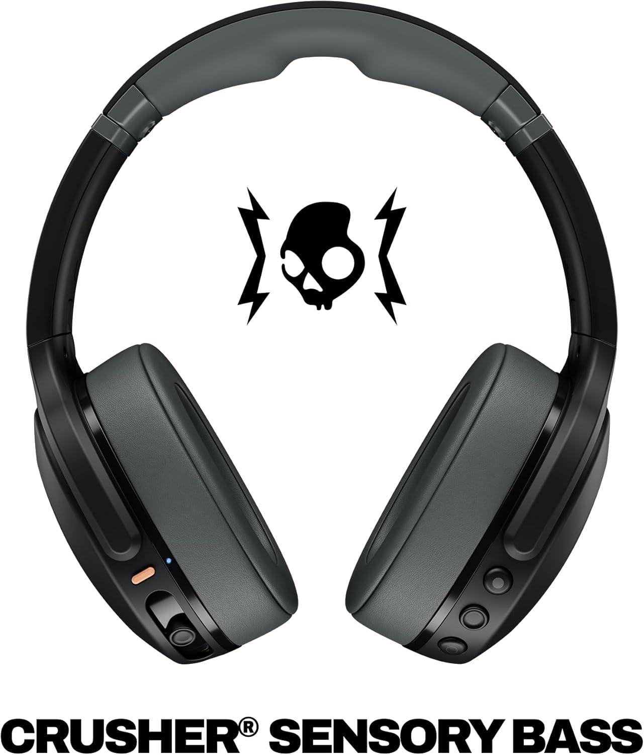 Skullcandy Crusher Evo Wireless Bluetooth Headphones with Extra USB-C Charging Cable, Multi-Sensory Bass, Noise Isolating Over-Ear Fit, 40 Hours Battery, Microphone for iPhone Android - True Black(Asphalt AMZ)