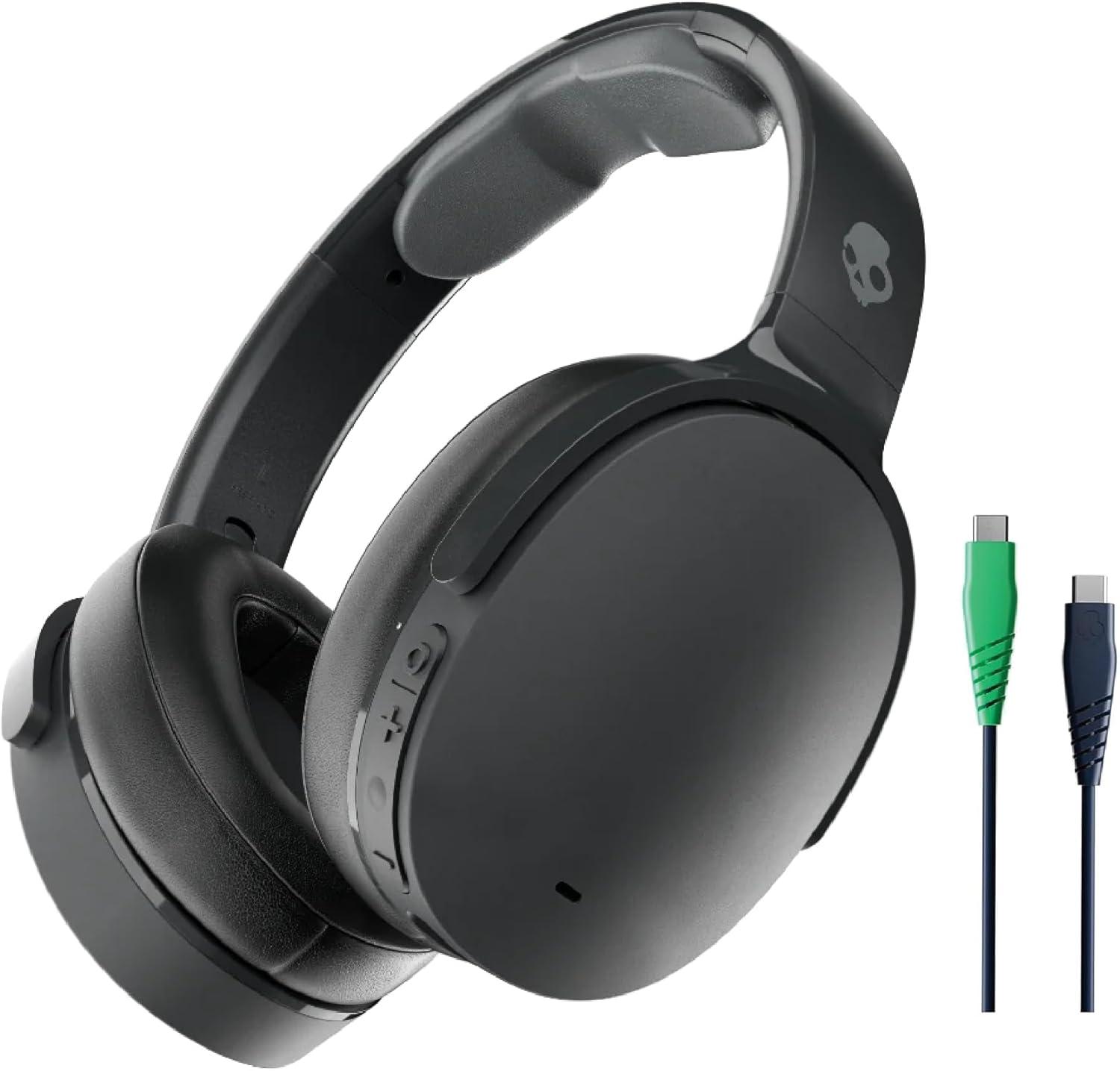 Skullcandy Hesh Evo Wireless Over-Ear Bluetooth Headphones with Extra USB-C Charging Cable, Noise Isolating, 36 Hours Battery, Foldable Lightweight Design, Microphone for iPhone Android – Bone(True Black)