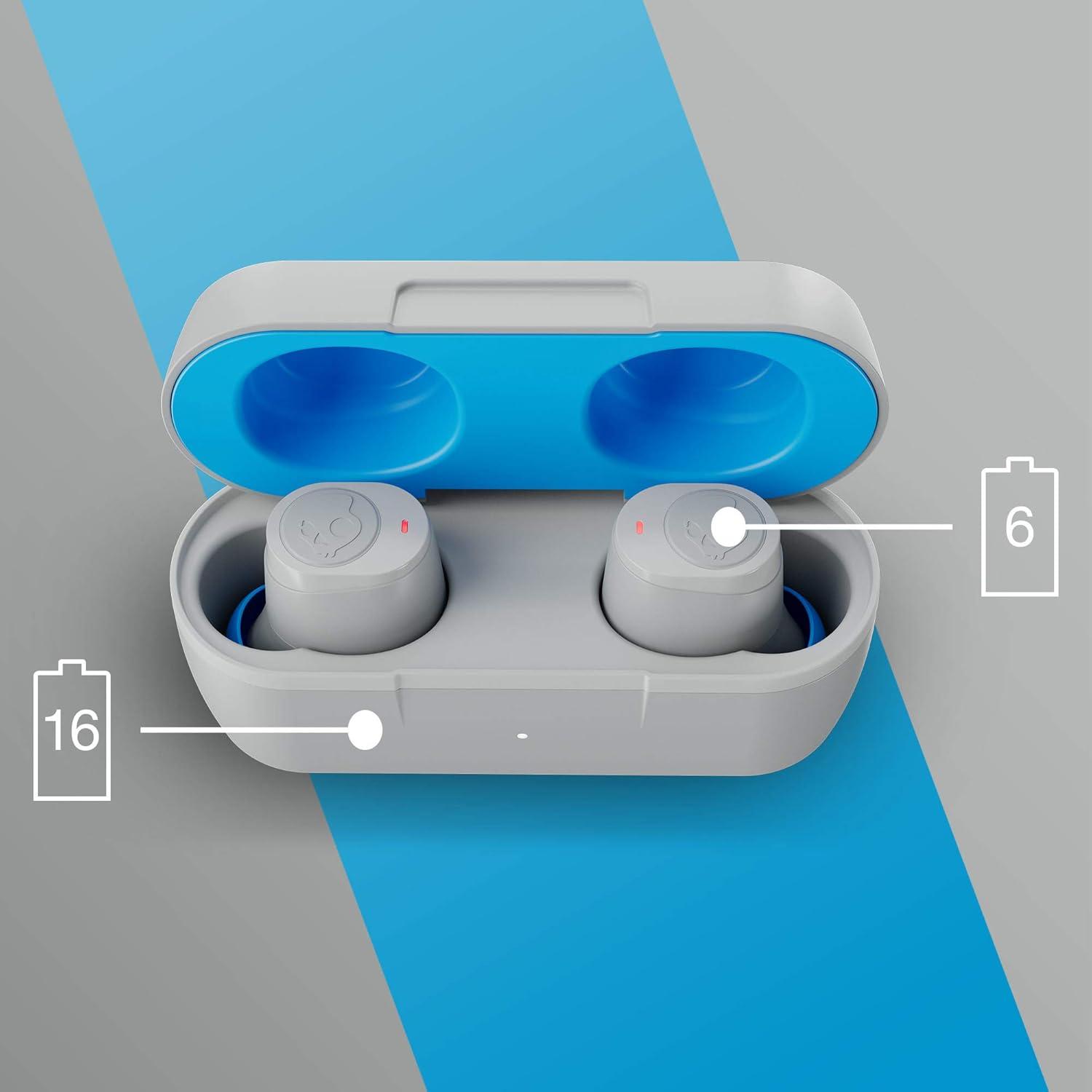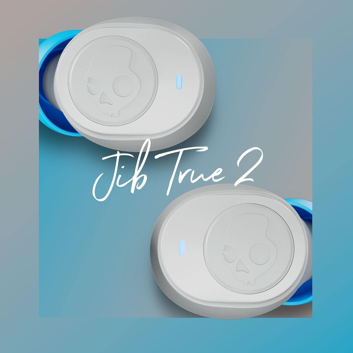 Skullcandy Jib True 2 Wireless Earbuds, Bluetooth Headphones, Up to 33 Hours Battery with Charging Case, Noise Isolating Fit, Sweat and Water Resistant, Microphone for iPhone Android - True Black(Light Grey/Blue)